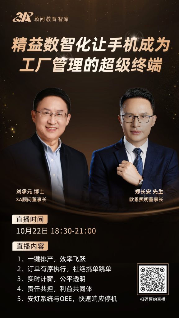 3A顾问第129期直播,主题:精益数智化让手机成为工厂管理的超级终端-欧恩照明郑董和3A顾问刘承元博士-精益生产管理-3A精益管理顾问-精益管理咨询
