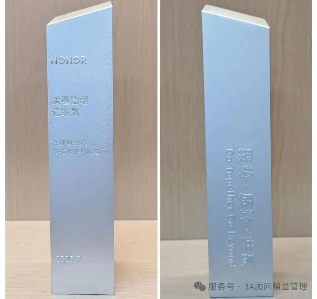 9月26日,2025年荣耀供应商质量大会在中国深圳隆重举行。深圳同兴达科技股份有限公司(以下简称同兴达)凭借在质量管理领域的卓越表现与持续进步,荣膺“质量管理进取奖”。同兴达董事长万总及核心管理团队成员出席并领奖。这一荣誉,是客户对同兴达长期坚守“顾客至上,质量第一”理念与实践成果的高度肯定。