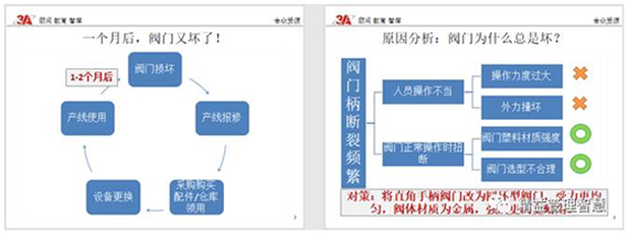 小刘:坏了就写维修单,报给设备部维修。设备部每次的解决方案就是更换新的阀门,可是过不了两个月又会坏掉,就这样不断的重复。感觉好像修不好一样。对我们现场的生产也有比较大的影响。